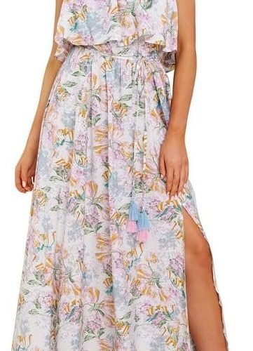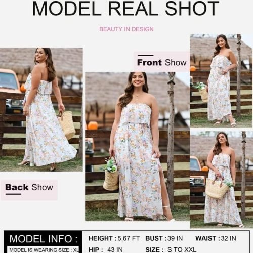 Womens Strapless Dresses Casual Summer High Waist Side Split Flowy Boho Maxi Dress