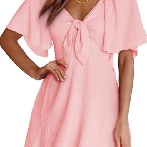 Womens Dresses 2024 Spring Summer Deep V Neck Elegant Bow tie Mini Dress S-XL