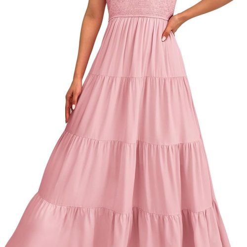 Womens Dresses 2024 Puff Sleeve Floral Casual Summer Dresses Smocked Backless Beach Flowy Tiered Maxi Dress