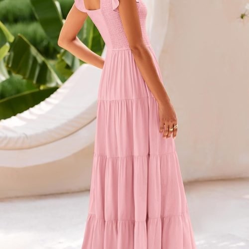 Womens Cap Sleeve V Neck Smocked Beach Sundress