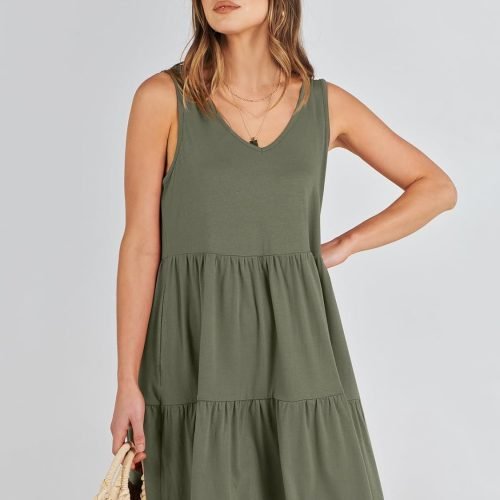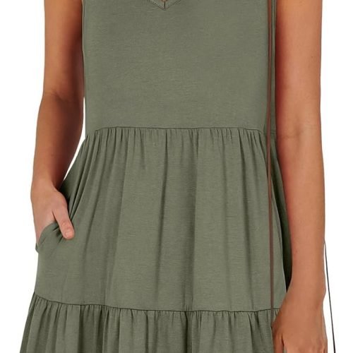Womens Summer Casual Tank Dress Sleeveless V Neck T Shirt Sundress Flowy Tiered Swing Mini Beach Vacation Dresses