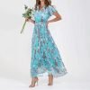 Women’s Dresses Swing Long Dress Chiffon Floral Short Sleeve Ruffle V Neck Fashion Waist Flowy Dresses