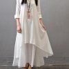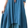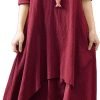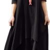 Catalogl Women’s Vintage Long Dresses V Neck Plus Size Asymmetric Hem Loose Casual Flowy Dress