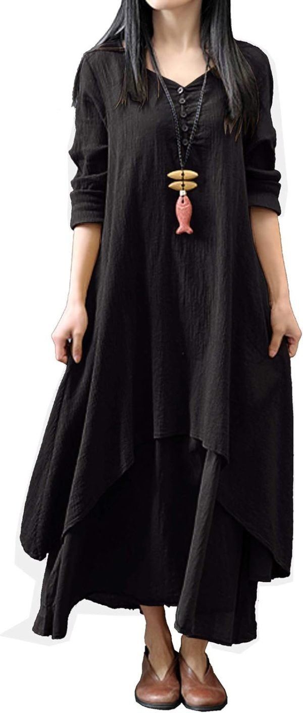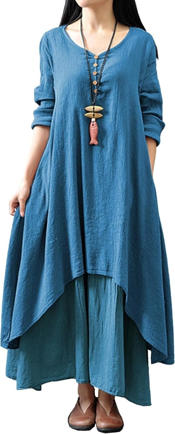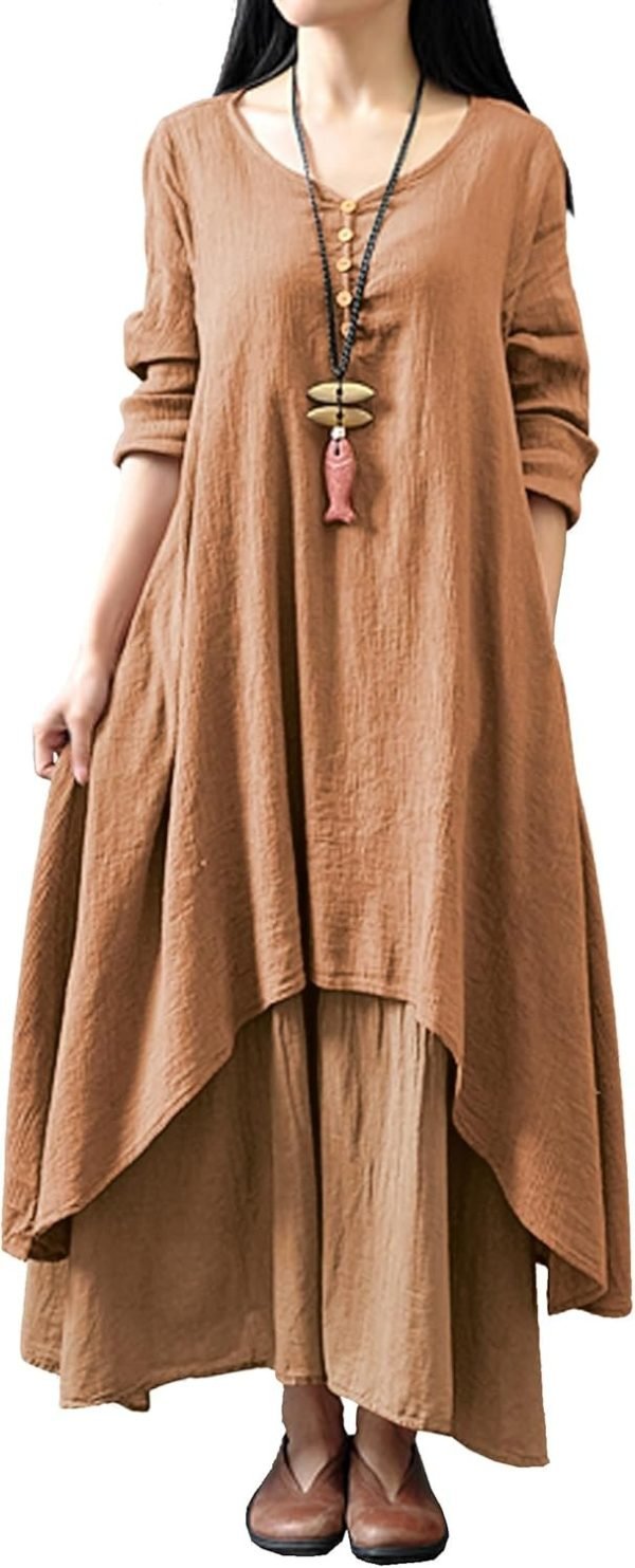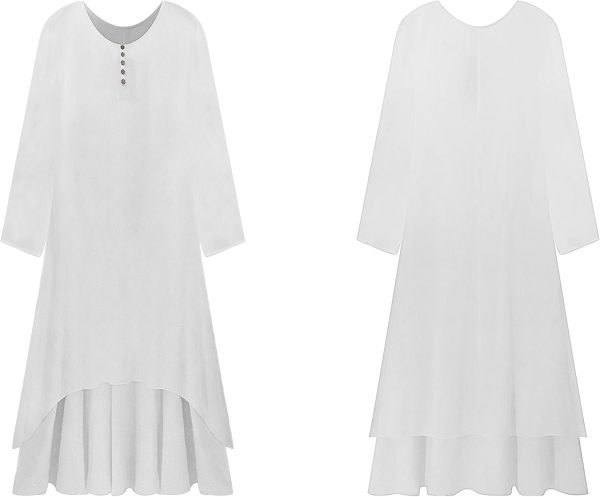 Catalogl Women’s Plus Size Vintage Dress Long Sleeve V Neck Layered Irregular Hem Loose Casual Long Dresses