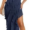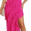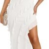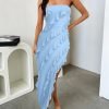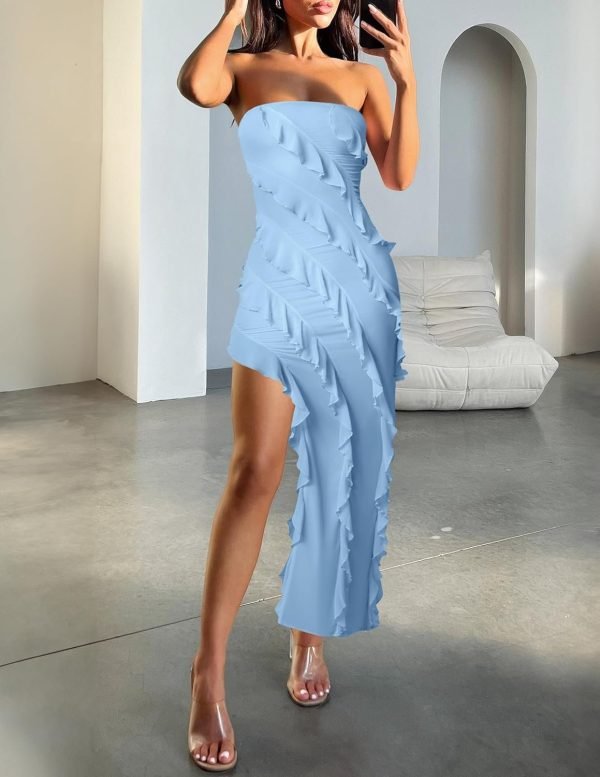 Women’s Strapless Layered Ruffle High Low Wedding Guest Midi Dress