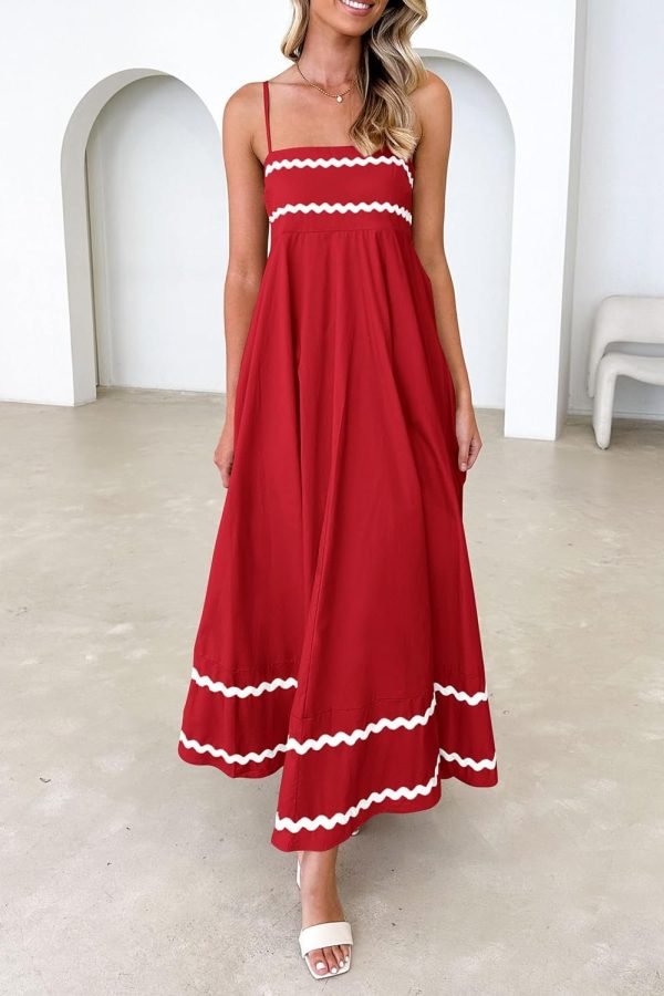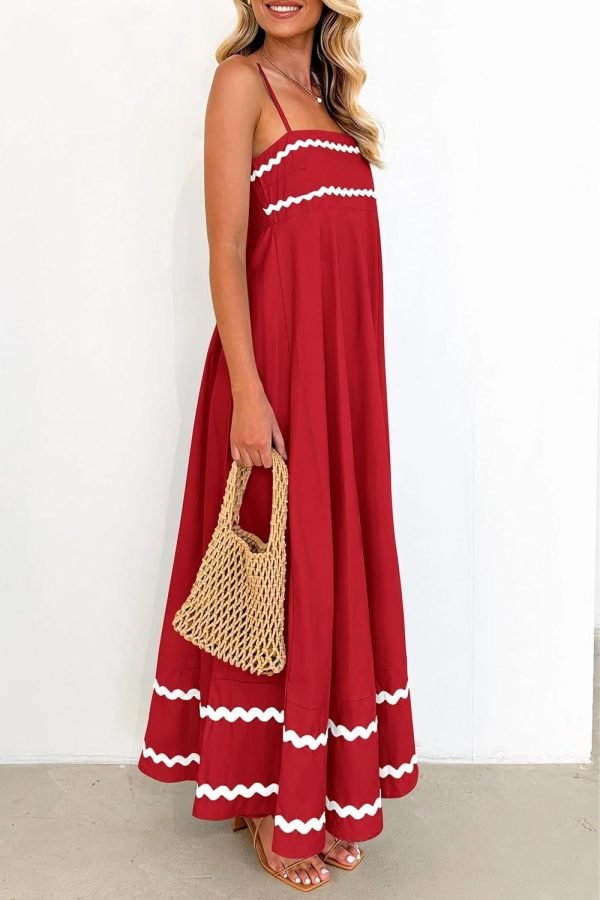 Catalogl Women Boho Maxi Dress Spaghetti Strap Beach Vacation Dresses