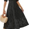 Women’s Casual Crewneck Puff Sleeve Floral Midi Dress