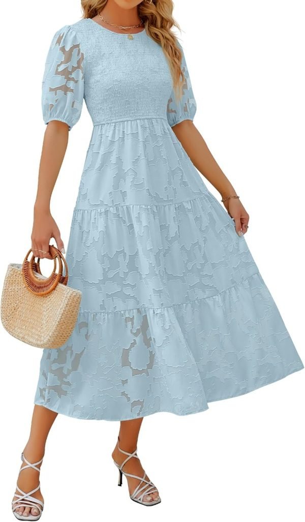 Women’s Sheer Puff Sleeve Wedding Guest Bridal Shower Cocktail Beach Party Dress