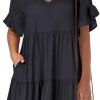 Features — Mini/V Neck/Ruffle Short Sleeve/Tiered/Flowy/Side Pockets