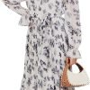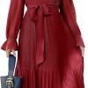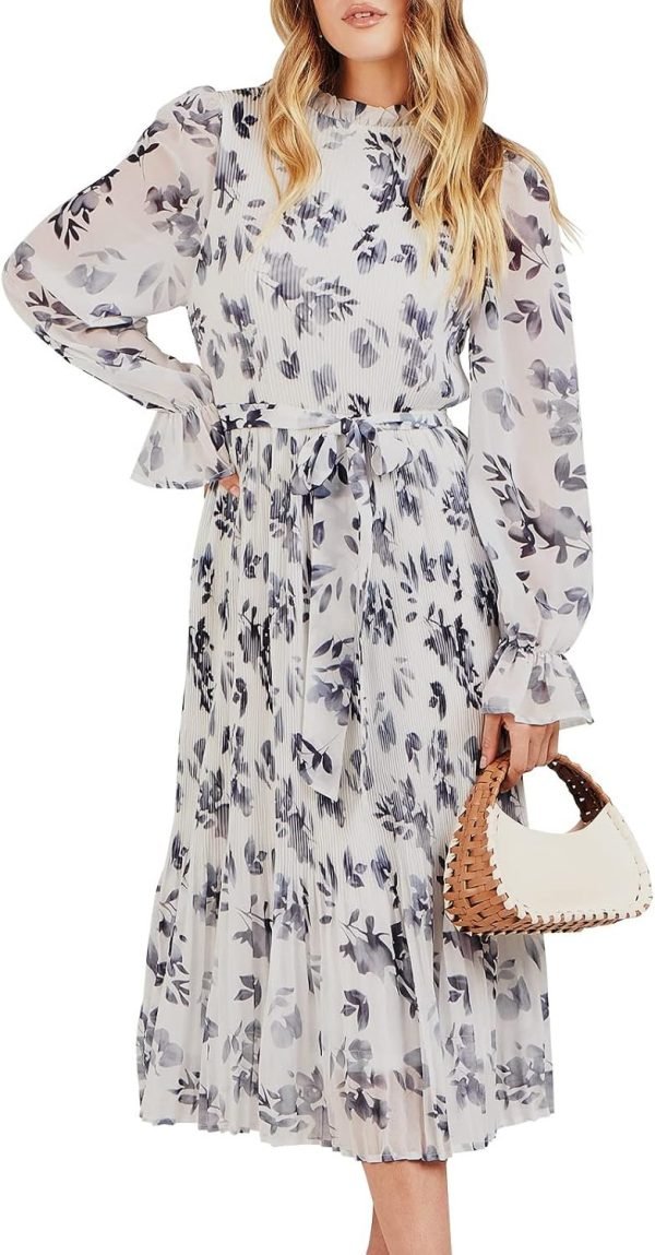 Catalogl Women’s Smocked A-line Pleated Swing Chiffon Dresses