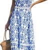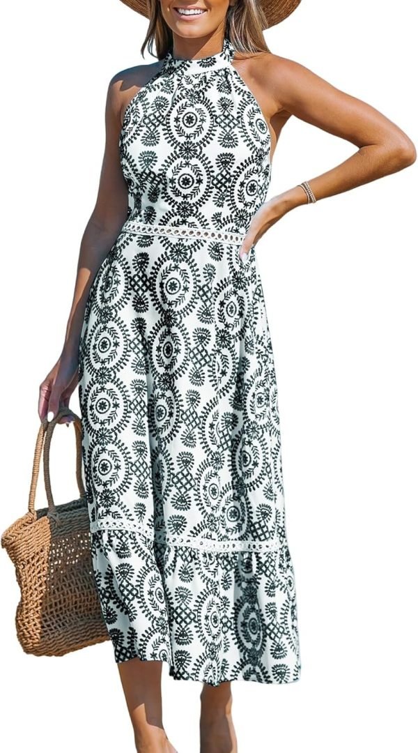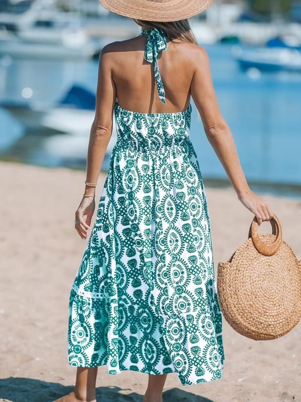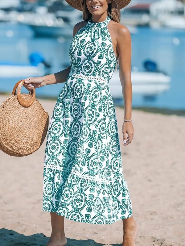 Women’s Midi Dress Halter Paisley Sleeveless Cutout Waist Long Beach Boho Summer Dress