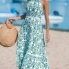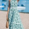 green long dress for women sleeveless paisley dress