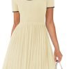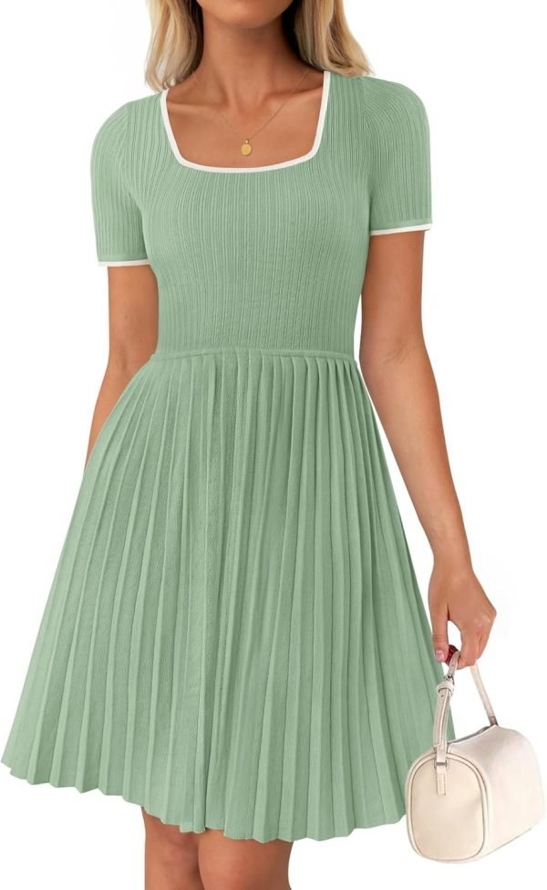 Summer Ribbed Knit Square Neck Swing Dresses for Women Trendy