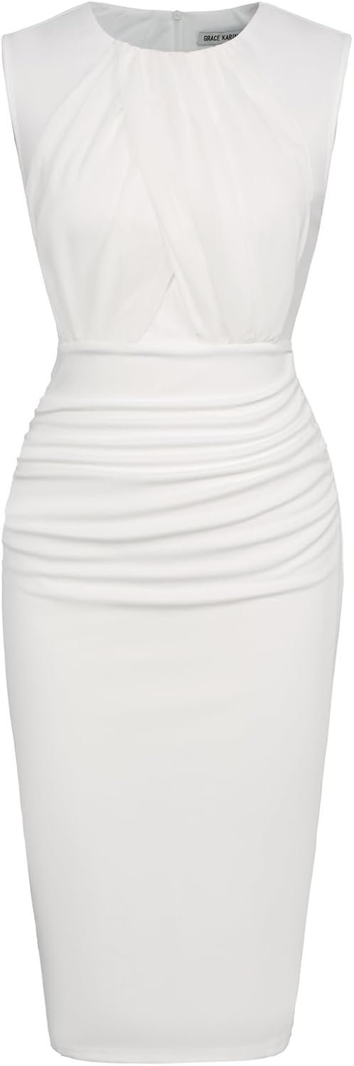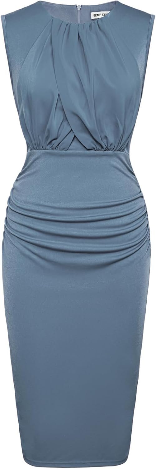 Ruched Formal Midi Dresses for Women Front Drape Sleeveless Pencil Dress