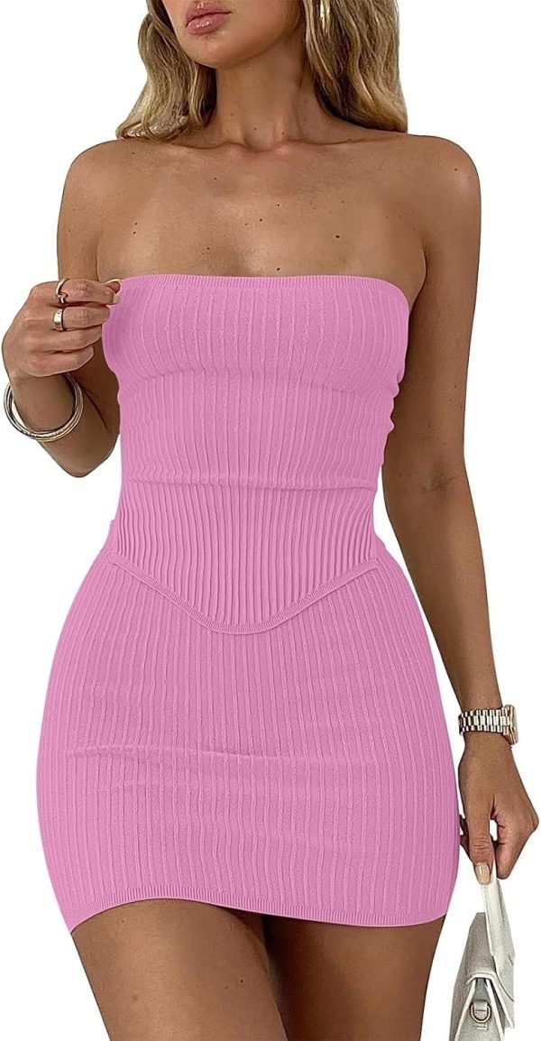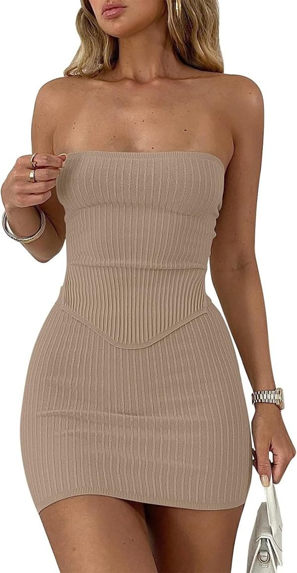 Features — Ribbed Knitted/ Strapless/ Sleeveless/ High Waisted/ Tube Top/ Split Hem Tops