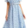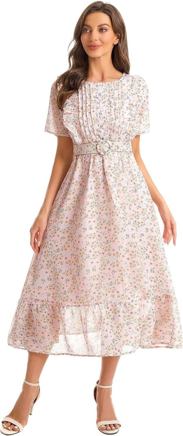 Women’s Vintage Ruffle Floral Belted A-Line Flowy Midi Dresses
