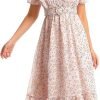 Women Casual Floral Chiffon Swing Flowy Dress for Women