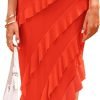 Womens Strapless Tube Asymmetrical Ruffle Maxi Bodycon Dress