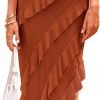Catalogl Womens Cold Shoulder Maxi Dress Tiered Ruffled Dressy Dresses