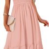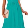 Catalogl Women’s V Neck Ruffle Sleeve Smocked Midi Dress