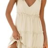 Womens Summer Casual V Neck Sleeveless Mini Dress 2024 Tie Shoulder Tiered Ruffle Swing A Line Short Sundresses