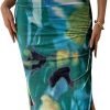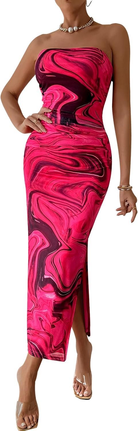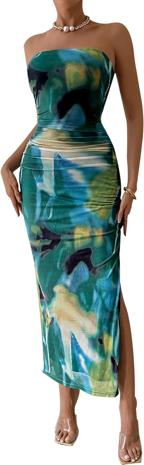 Women’s Summer Maxi Bodycon Dresses Strapless Tube Top Printed Long Party Club Slit Dress