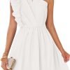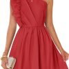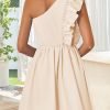 Women’s Elegant Ruffle One Shoulder High Waist Short Dress for Dating