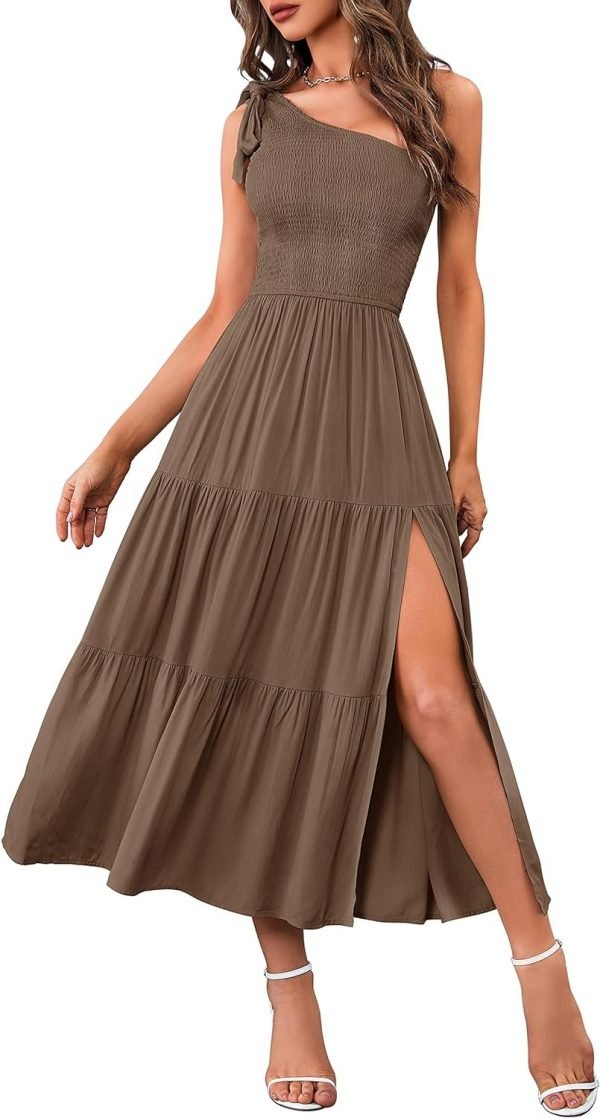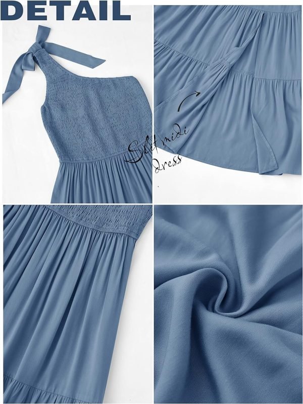 Women’s One Shoulder Casual Smocked Dress With Split