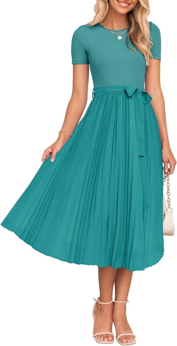- Our cute pleated dress is soft and comfy, lightweight and breathable, with fully lined. You can easily match with high heels, sandals, wedges, delicate jewelry, clutches to complete a very glamorous summer look.