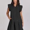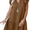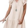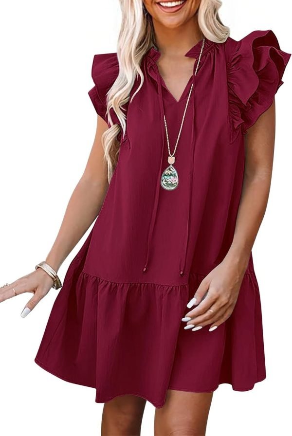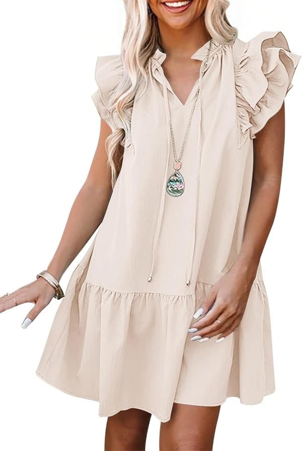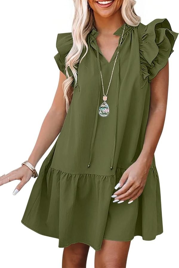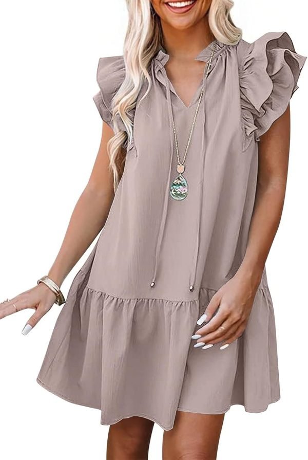 Be the first to review “Womens Summer V-Neck Drawstring Ruffle Cap Short Sleeve Casual Shift Mini Dress with Pockets”