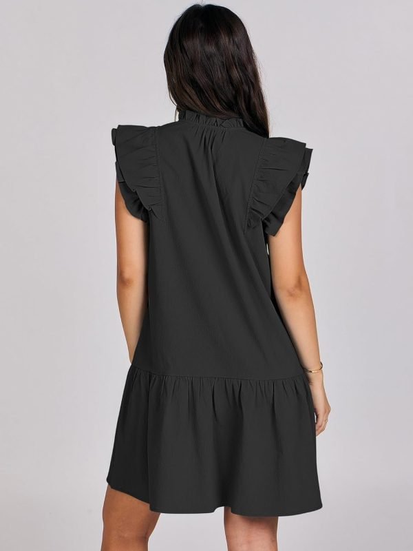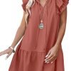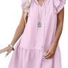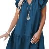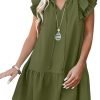 Catalogl Womens Summer V Neck Ruffle Short Sleeve Mini Shirt Dress