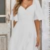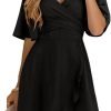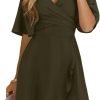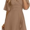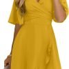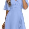 Catalogl Women’s Wrap V Neck Short Flared Sleeve Wedding Guest Dress