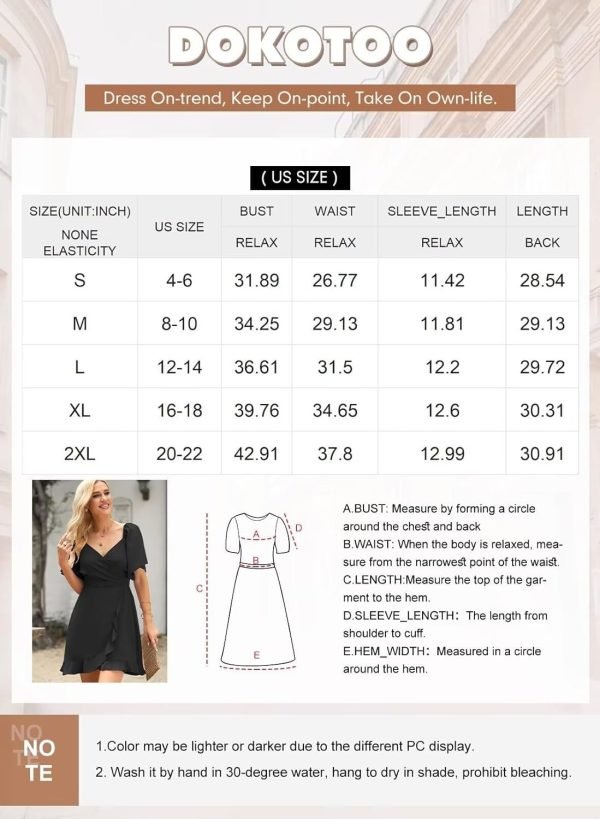 Catalogl Women’s Wrap V Neck Short Flared Sleeve Smocked Elastic Waist Tiered Belted Ruffle Hem Party Short Dress