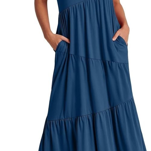 Women Summer Maxi Dress Short Sleeve Swing Casual Asymmetric Tiered Vacation Long Beach Sundress Outfits