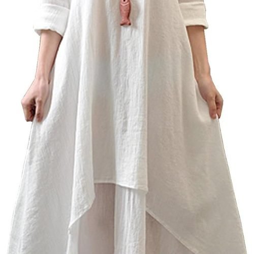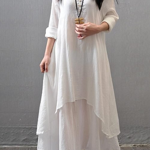 Women Long Sleeve Cotton Casual Loose Plus Size Irregular Long Dresses