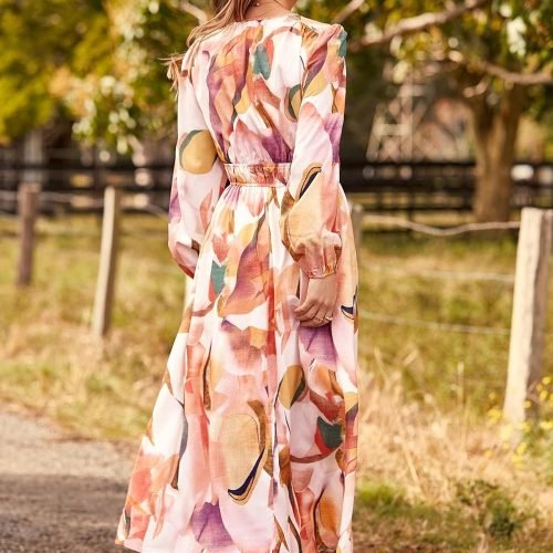 Women’s 2024 Fall Boho Maxi Dress Casual Long Sleeve V Neck Printed Beach Long Flowy Dresses